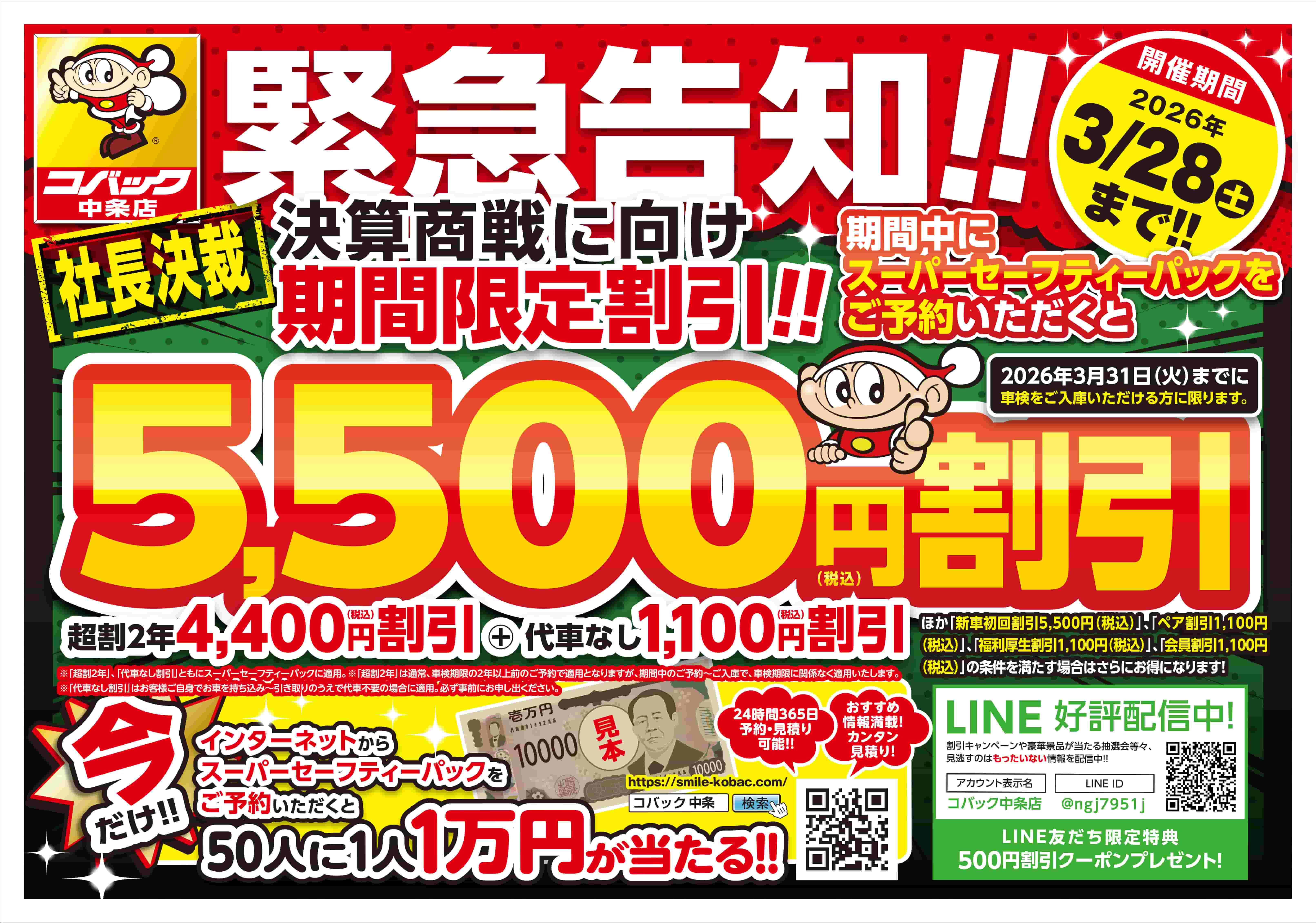 上記価格はスーパークイックパックの車検総額で、国に納める諸費用・消費税が含まれています。