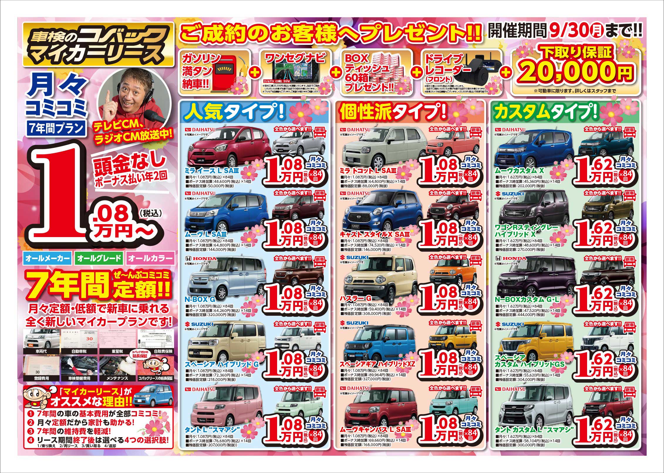 少しでも安くしたい、というお客様は9月中のご入庫をおすすめ致します。