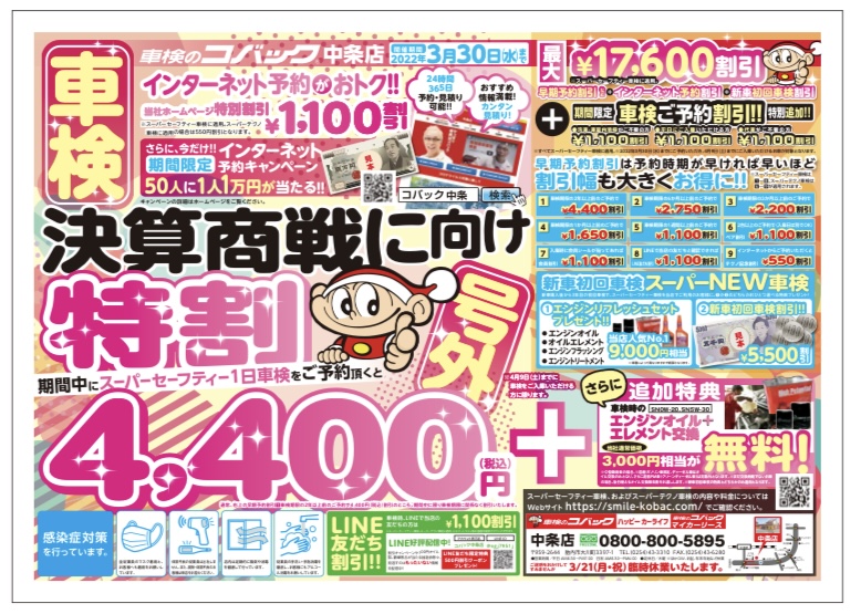 2022年3月30日(水)までにスーパーセーフティ車検のご予約を頂けますと