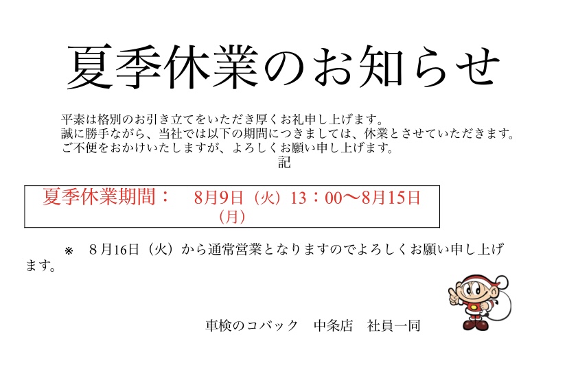 新車のご購入もぜひ車検のコバック中条店にご相談ください!!