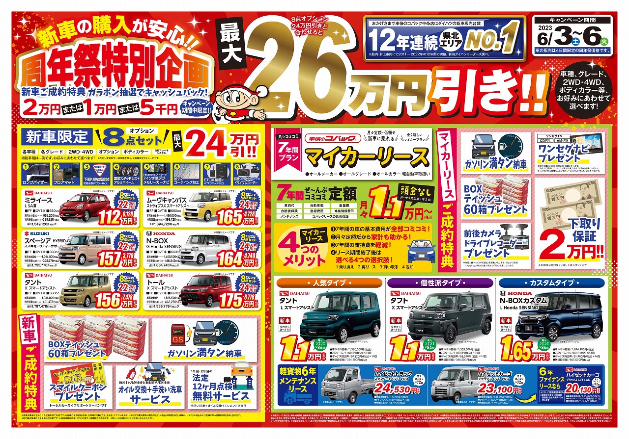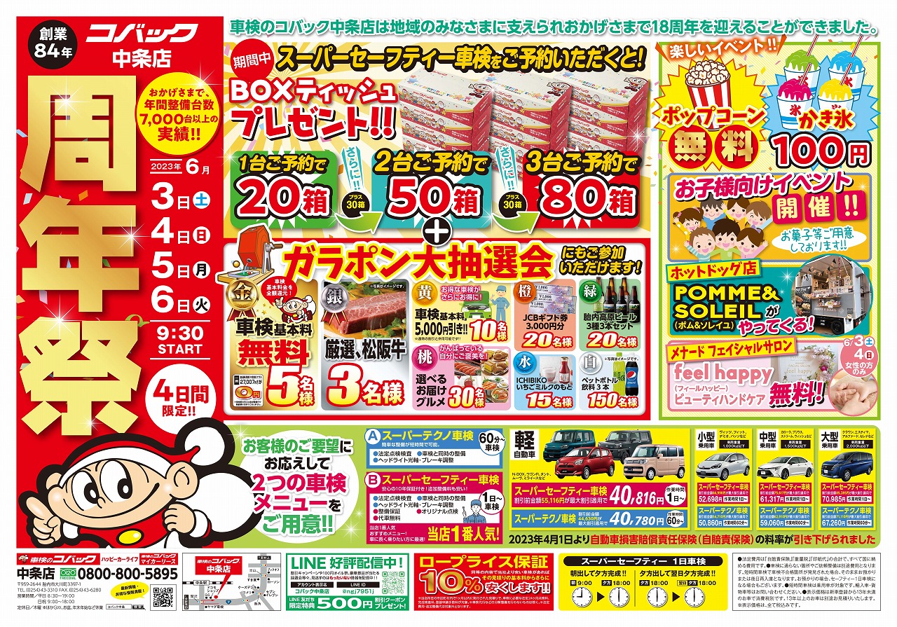 日頃は車検のコバック中条店おご愛顧いただき