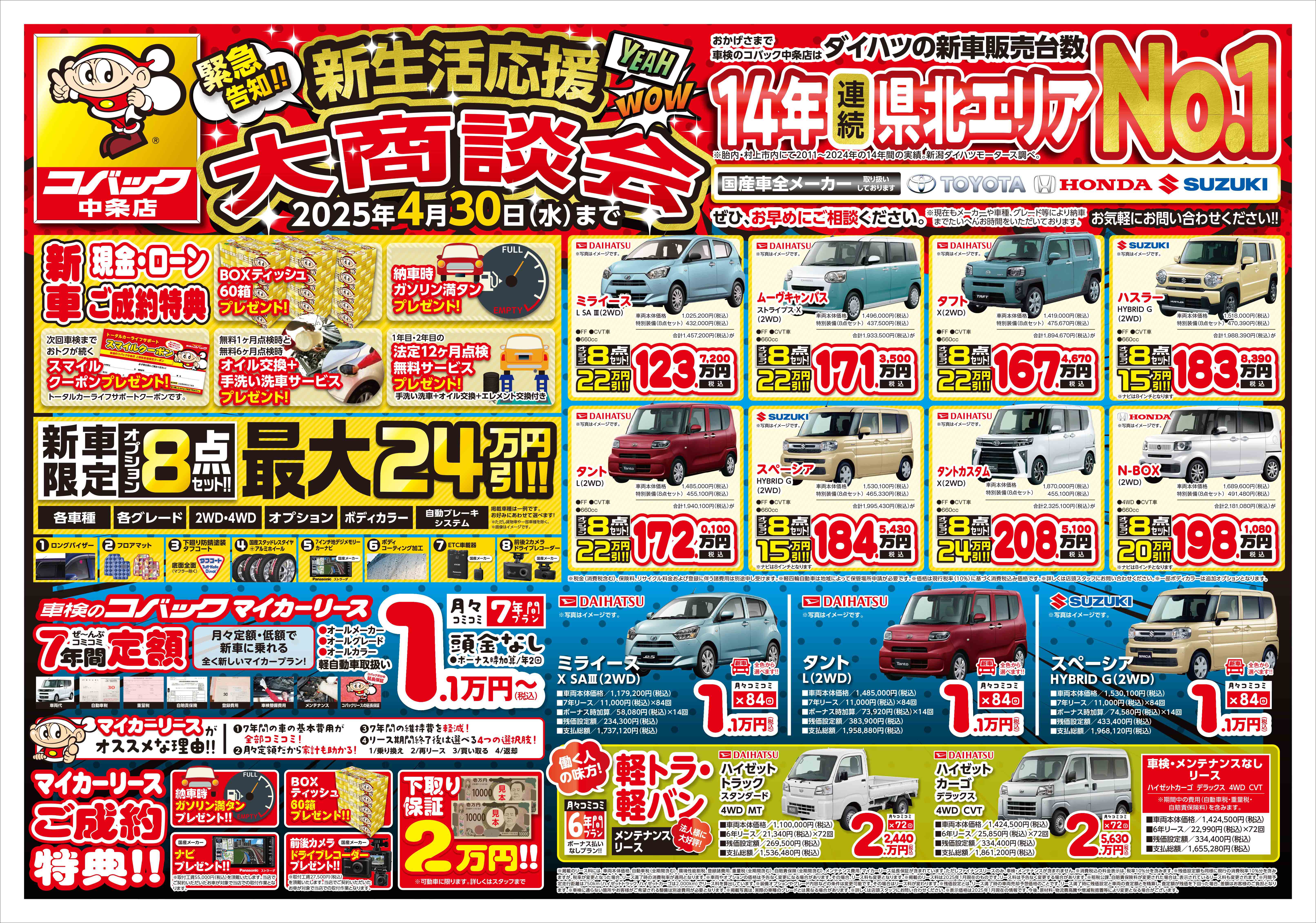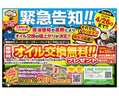 (令和7年4月30日水曜日までのご入庫に限りになります)