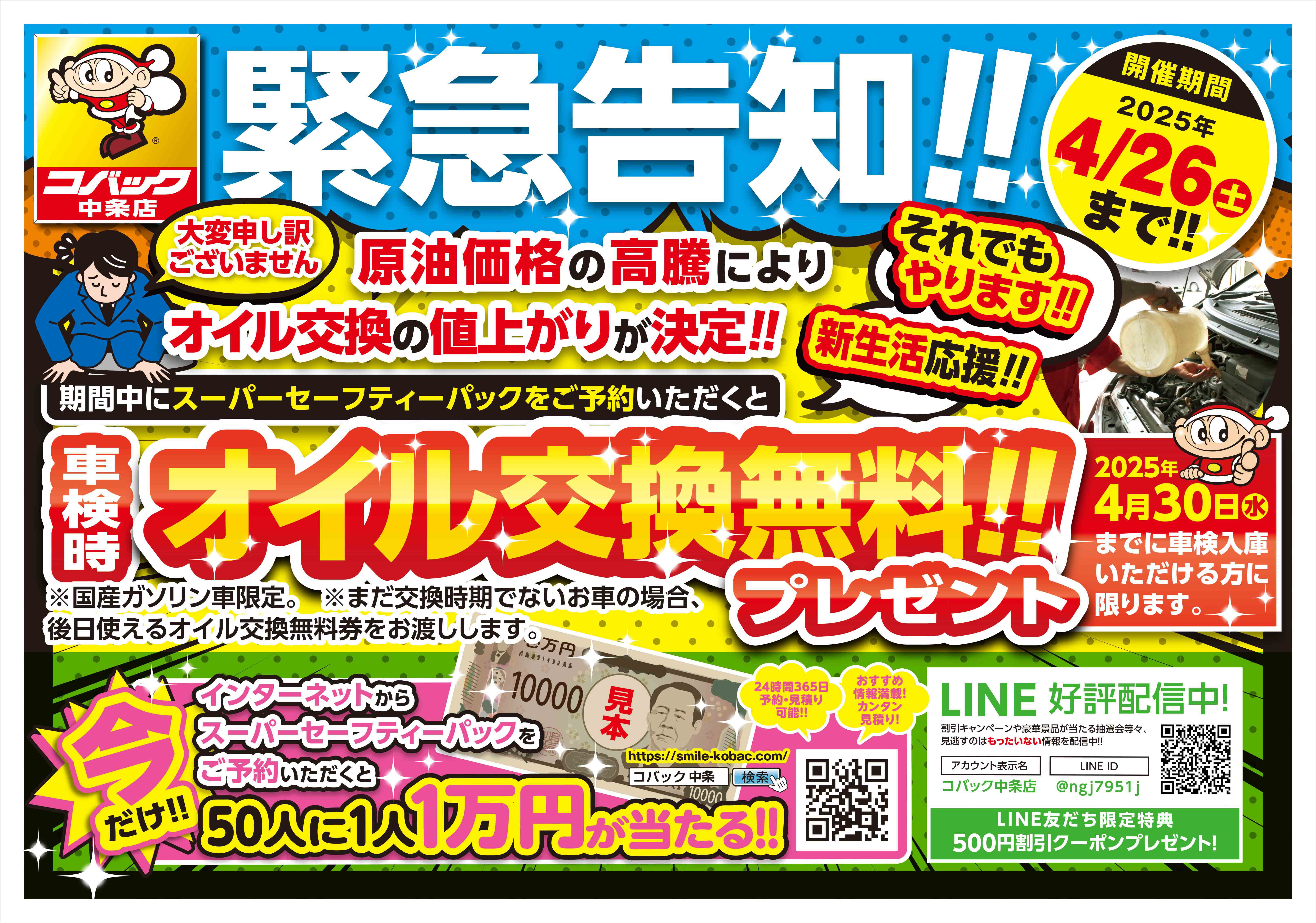 今!スーパーセーフティーパックで車検を予約するとアノ→高騰しているオイル
